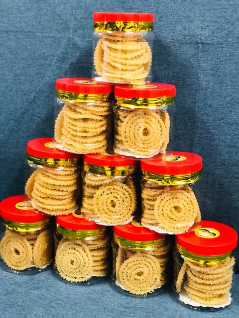 Nikmati keaslian rasa muruku tradisional yang dihasilkan dengan penuh teliti, hanya menggunakan bahan semulajadi dan minyak berkualiti tinggi. Dimasak apabila menerima pesanan – setiap lingkaran muruku adalah simbol kesegaran dan kasih sayang dalam setiap adunan